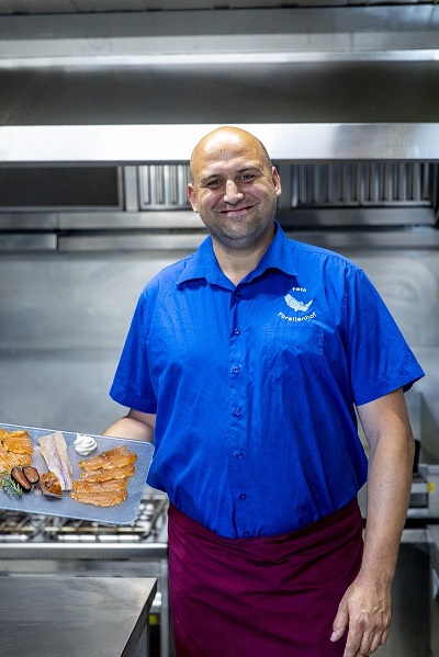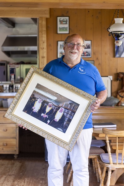 Foto: Dr. Christian Hodeige und Jörg Fath bei der Übergabe des Rädle-Magazins im Forellenhof-Stüble.